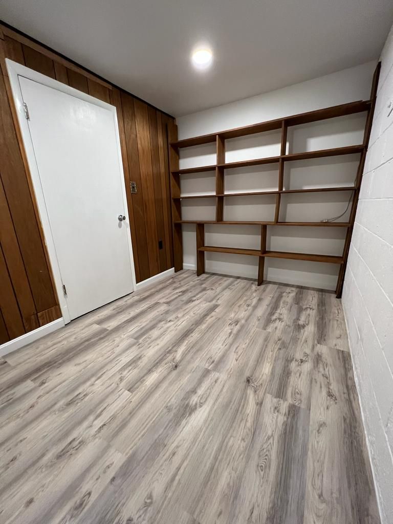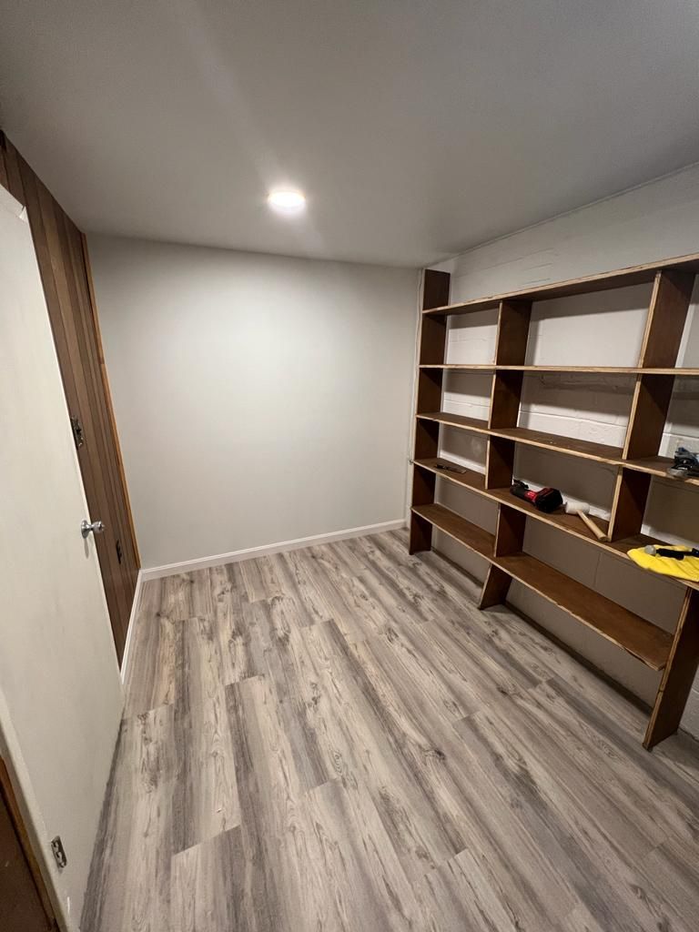 Rehab: Unfinished Basement Room to Finished Built in and New Flooring